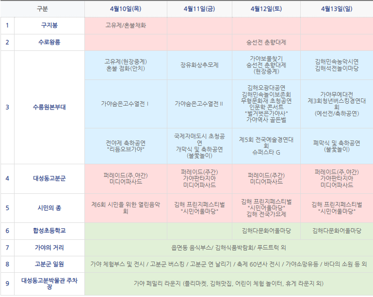 김해시청 홈페이지 또는 축제 공식 페이지에서 사전 예약 및 상세 일정 안내도 확인할 수 있습니다.