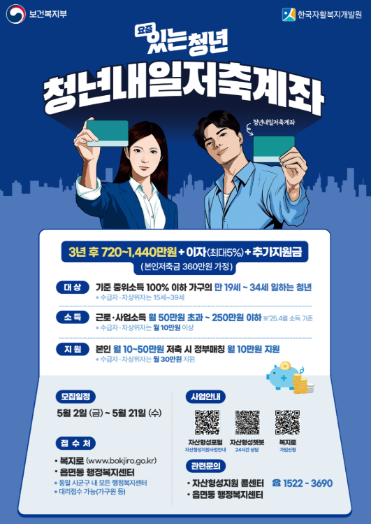 청년내일저축계좌 조건부터 자격요건, 신청 절차, 정부지원 혜택까지 총정리했습니다. 빠르게 청년 금융 지원제도를 확인하려면 아래 버튼을 눌러주세요.