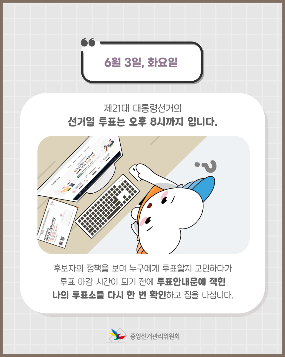 투표일: 2025년 6월 3일 (화요일) 오전 6시부터 오후 8시까지