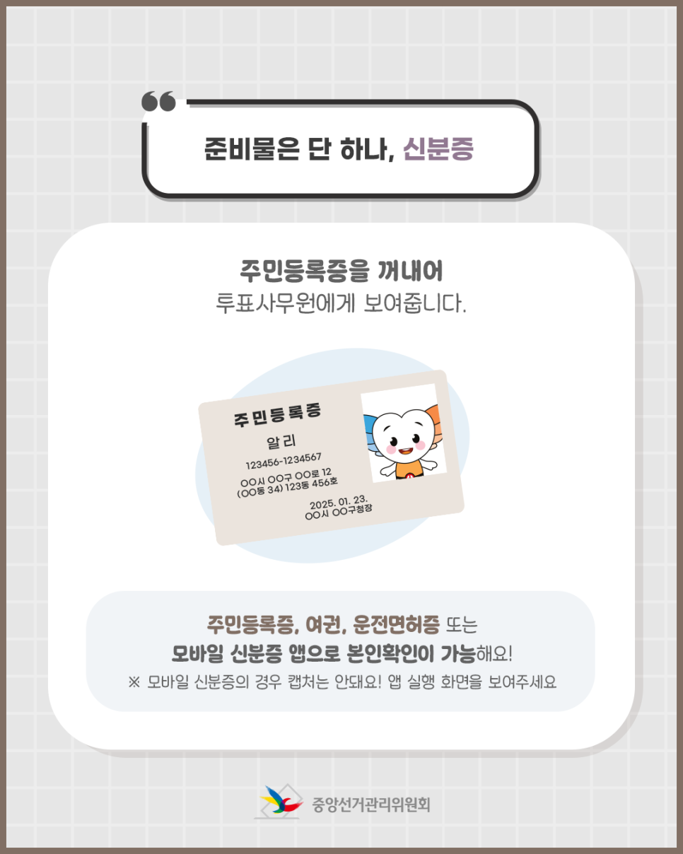 ※ 모바일 신분증은 앱 실행 상태로 제시해야 하며, 캡처 이미지는 인정되지 않습니다.